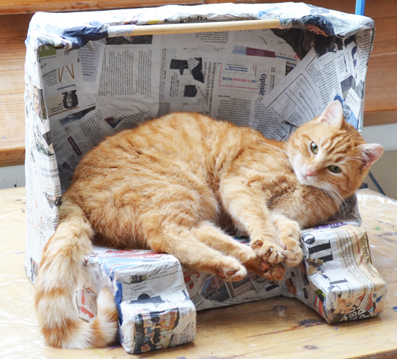 12--03-2016 Rotterdam Weken achtereen was het podium van Xiao de plek waar rode broeders hun rol opeisten. Waarom juist daar? Wie zijn of haar leven voltimmert met het bereiken van een doel kan op een dag tot de ontdekking komen dat het leven zelf weleens het doel zou kunnen zijn. Zo gebeurt het in huize Theeroos regelmatig dat de Rooie Rotterdammer naar buiten wil door het kattenluik en kat Floris net voor de ingang zit. Een zwaar brommend geluid vol machtstonen spreekt de taal die wetboeken ook hanteren : tot hier en niet verder. Roedel, de rooie Rotterdammer heeft door zijn levenservaring geleerd dat niet reageren en niks doen de meeste uitwerking heeft. Hij gaat dus op drie millimeter afstand van Floris zitten en richt zijn blik op oneindig Hij is muisstil. Floris die zich almaar drukker en drukker maakt en daarbij de volle aandacht van kat Fabian trekt spat bijna uit elkaar van ongeduld. Het doel van Floris is al maanden Roedel (= de Rooie Rotterdammer). De lezer vraagt zich natuurlijk af hoe dat af loopt? Met een sisser kan deze behaarde jongen u met een natte druipende bek verklappen: ssssssssssss.....issssssssssssss. Floris knippert met zijn ogen, even afgeleid door het hoge gemauw van Fabian en een seconde niet gekeken is een seconde niet geleefd. Roedel is vuurpijlsnel door het kattenluik geschoten en sluipt alsof er niets gebeurd is door de struiken als een slimme vos in een stadstuin. Floris totally confused. Natuurlijk zit geen enkel levend wezen te wachten op een Floris die hem op de hielen volgt en eist ieder levend wezen een plek op om echt rustig een dutje te kunnen doen. Stel je voor dat je buurmeisje jou constant besluipt en in de gaten houdt. Of liever nog zo'n gluiperig buurjongetje met billenknijpvingertjes. Stel je voor dat het besluipen dag en nacht door zou gaan. Dan klim je vanzelf een podium op als daar je rust verzekerd is. Het kartonnen theater van Xiao is zo perfect gemaakt dat een kat er precies inpast en veel bescherming heeft, plus een prachtig uitzicht op de grootste bemoeihal uit de buurt. Zowel kater Rodin als kater Roedel waren voor weken niet van het podium af te krijgen. Wel wisselden ze elkaar af. Daar hadden ze op hun manier iets van een afspraak over gemaakt, leek het. Helaas, afgelopen zaterdag, 12 maart ging Xiao na een maand weer verder met haar theater. De toneelvloer was gaan zakken door het gewicht van de rode snorapen. In het midden maakte ze daarom een extra verhoogd podiumpje dat kan draaien. Goed voor een muis, maar niet voor twee goedgevulde slaapbroeders. De rode jongens moesten weer op zoek naar een nieuwe bunker. Wat dacht je wat het werd? Waar ligt een kat warm en zacht en verscholen? Jawel, de la van Edwin. Die grote op wieltjes onder het bed. Daar ben je uren, zo niet dagen onvindbaar voor een Floris, alleen zij, mijn verzorgers zijn daar niet zo blij mee. Jij weet wel waarom...., ............. .(V)Lees meer Flits (k)lik hier